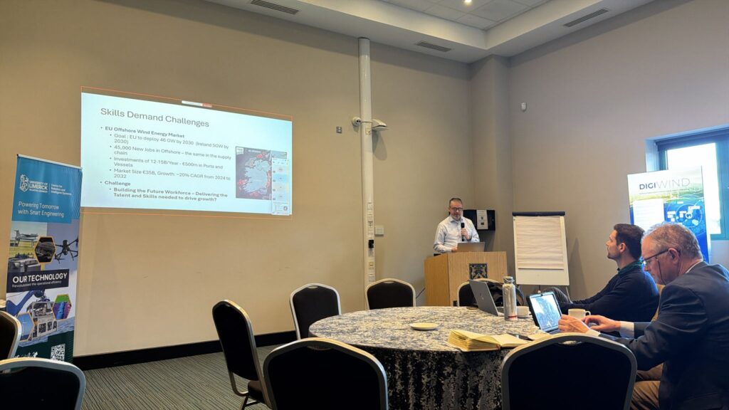 The Technological University of the Shannon (TUS) partners in the DigiWind project had a highly engaged and productive October, actively participating in three significant national and international wind energy forums. The team presented, attended, and collaborated with industry leaders, policymakers, and innovators, reinforcing DigiWind’s role in addressing the sector’s crucial challenges, particularly in skills and technology.