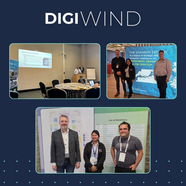 The Technological University of the Shannon (TUS) partners in the DigiWind project had a highly engaged and productive October, actively participating in three significant national and international wind energy forums. The team presented, attended, and collaborated with industry leaders, policymakers, and innovators, reinforcing DigiWind’s role in addressing the sector’s crucial challenges, particularly in skills and technology.